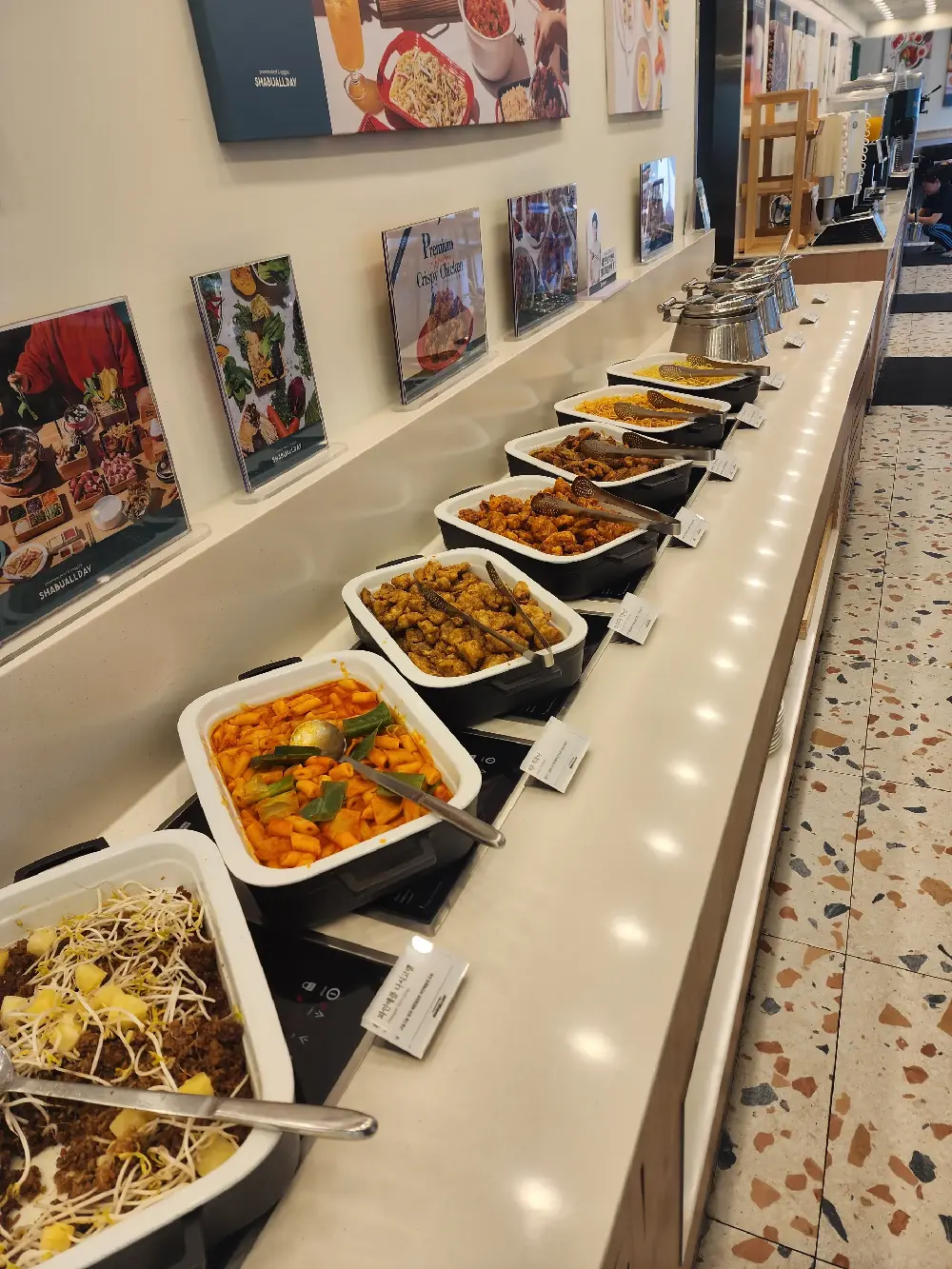 저랑 남친은 요즘 다이어트중이예요 같이 헬스장도 다니고 있는데 데이트하면 뭘 먹어야 할까 걱정이 되더라구요 건강한 메뉴를 찾다가 샤브샤브로 결정 ! 샤브올데이는 무한리필이라 사이드메뉴도 다양해서 방문하기 좋았어요 데이트 가는길에 젤 가까운곳으로 골랐어요 생긴지 얼마안되어서 놀랐습니다 ! 샤브올데이 인천논현점은 생긴지 얼마안되어서 정말 크고 깔끔했어요 일요일에 방문해서 사람이 매우매우 많았습니다 그래서 20~30분정도 웨이팅 했어요 규모가 커서 그런지 웨이팅 빠지는 속도도 빨랐어요 웨이팅 기다리는곳도 있어서 좋았습니다 의자가 더 있어도 될것같아요 ㅋㅋㅋ 샤브올데이는 반반육수를 고를수 있는데 순한맛이랑 마라맛으로 주문했어요 채소랑 건더기류를 다 넣어버리고 찍었지만 .. 저는 개인적으로 마라육수가 맛있었어요 순한맛 육수는 제입에는 너무 맹맹하달까 .. 마라육수는 자극적이고 채소에도 간이 잘 베어들어요 찍어먹는 소스 팁은 땅콩소스에 고추기름 + 다진마늘 + 다진고추 + 칠리소스 조금 이렇게 먹으면 맛있어요 약간 훠궈 소스 느낌 ? ㅋㅋㅋㅋ 고기는 처음에는 준비되어 나오구요 그 다음부터는 직접 가져다가 드시면 됩니다 고기는 질기지 않았는데 우삼겹인지 삼겹인지 암튼 비계 부분이 같이 있는게 더 맛있더라구용 월남쌈도 만들수있어요 월남쌈 전용 야채들도 전용 접시에 담아줍니다 정말 다양했는데 제가 좋아하는것들로만 담았어요 월남쌈 만들어 먹으면 건강한데 넘 빨리 배불러서 손이 많이 가지는 않았어요 ㅎㅎ 사이드메뉴 다른 샤브샤브집이랑 다르게 사이드가 굉장히 많았어요 파스타 , 삼겹살, 치킨 등등 너무 많아서 샤브샤브를 딱히 좋아하지 않는 분이라도 와서 먹기 좋겠더라구요 다만 아쉬운점은 삼겹살 이런 애들은 싼 부위를 쓰는지 잡내가 좀 나서 저는 불호였어요 파스타도 뭔가 심심한맛 ? 제가 맛있게 먹은 사이드는 간장치킨이예요 냉동 닭튀김이겠지만 .. 그래도 맛있더라구요 치킨류는 잡내는 없어서 좋았어요 떡볶이는 달달한 맛이 많이 났고 피자도 무난한 냉동 피자맛 ! 소세지도 잡내가나서 고기류들은 비추예요 ㅜㅜ 볶음밥은 파프리카 맛이 많이 나고 샐러드류가 많았는데 샐러드 먹고 싶지는 않았어요 ㅋㅋㅋ 결론은 샤브샤브는 괜찮지만 사이드가 가짓수에비해 맛있지는 않다 치킨은 맛있다 1인당 3만얼마였던걸로 기억하는데 그 돈이면 쿠우쿠우를 가던지 .. 소담촌가서 샤브샤브를 맛있게 즐길것같습니다 지금까지 갔던 샤브샤브집중에 소담촌이 저는...