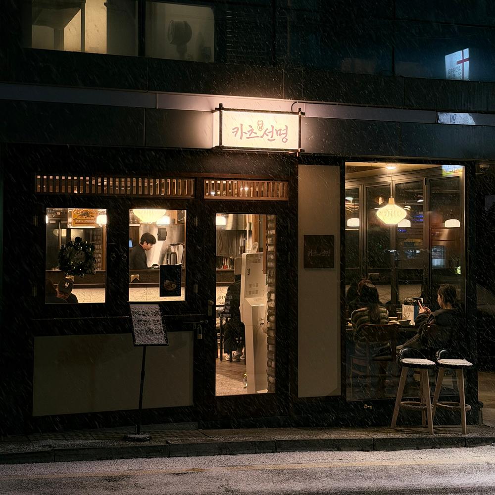 삼성동에 위치한 카츠선명에 다녀왔습니다. 오픈전부터 유심히 지켜보고있었는데요. 오픈전 네이버지도에는 YBD 돈카츠를 12000원에 등록해놓으셔서 기대중이였습니다. 오픈 직후에 버크셔로 바뀌어서좀 아쉽긴하지만 버크셔임에도 가격이 상당히 메리트가 있네요. 카츠선명의 간판 비야게레로, 키헤이골목쪽이라서 먹고나서 2차로 거기에도 용이합니다. 입구 키오스크에서 주문을 하면 됩니다. 안쪽에 보이는 숙성고 제가 주문한 쿠로카츠 상로스만 특이하게 먹물빵가루로 튀기시더라구요. 가격도 14000원이면 굉장히 합리적입니다. 찬으로는 백김치, 생강가리, 타카나입니다. 백김치와 가리가 잘 어울렸습니다. 카츠에 대해서 이야기해보자면, 일단 굉장히 바삭한 고온에서 튀긴 돈카츠입니다. 저는 저온보다 고온을 선호해서 매우 좋았습니다. 원육자체에서는 숙성을 해서 그런건지 모르겠지만, 장류를 가열하면 나는 콩같은향이 느껴졌습니다. 종종 카츠집들에서 느껴질때가 있는데 저는 극호. 버크셔특유의 달큰한 지방맛과 끝에 살짝 남는 돼지의 산미 또한 느껴졌습니다. 히레도 먹어보고 싶었는데 따로 사이드는 없어서 다음에 방문하면 아예 히레카츠정식을 먹어야겠네요. 잘먹었습니다.