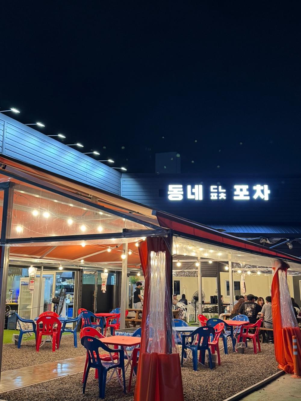 가족들이랑 추석연휴에 모여서 어디갈까 고민하다가 다사에 새로 오픈한 야외감성포차 ‘동네포차’에 가서 즐거운 시간 보냈는데용ㅎㅎ! 분위기 맛집에 안주 맛집 이더라구요 이제 날씨도 아침 저녁으로는 선선하니 야외 포차에서 술 한잔하기 딱 좋은날씨에요! 동네포차 매일 17:00 - 02:00 01:00 (라스트오더) ***-****-**** 외부 및 내부 동네포차는 대구 지하철 2호선 대실역 2번 출구에서 가까우니 지하철 이용해도 편하게 올 수 있어서 좋아용>< 동네포차를 ㄷㄴㅍㅊ라고 간판에 적은 거 너무 귀여워요 ㅋㅋ 주차는 포차 앞에 2대정도 주차가능해요 바로 옆에 휴림원주차장(유료)도 있어요! 주차비지원은 없으니 참고해주세요 분위기 깡패 ! 개인적으로 이런 포장마차 분위기 엄청 좋아해요 편하게 술 마실 수 있어서 좋은 거 같아요 그냥 동네 집 앞에서 술 마시는 느낌~ 그래서 이름이 동네포차인가?ㅎㅎ 분위기랑 잘 어울리는 가게 이름이네용 추석연휴인데 손님이 많더라구요 저희 들어가고 계속 손님이 들어왔어용 자갈 바닥에 잔디바닥이라서 완전 노상분위기 가득해요 테이블도 많고 넓어서 단체모임하기도 좋아보여용 거기에 분위기 좋은 조명에 포차 테이블+의자 … 크으 에어컨에 선풍기도 있어서 덥지 않게 먹을 수 있어요 술 마시면 열 올라서 덥잖아요!! 근데 하나도 안 더워서 좋았어요 한 켠에는 종이컵, 수저, 앞접시, 과자안주가 있어용 직원분들 바빠 보일 때 그냥 쓱 가서 가져오기 좋아요-_-ㅋㅋ 시원한 생맥주기계도 보이고 각종 술들도 보이네용 메뉴 메뉴가 엄~청 많고 하나하나 다 알차보여요 안 땡기는 메뉴가 없는 ㅠㅠ.. 다 맛있어보여.. 술이랑 잘 어울리는 안주들로 준비되어있어요 술 종류도 하이볼에 막걸리, 칭따오 등 엄청 많네요 해물짬뽕탕 주전자꼬치오뎅 옛날탕수육 떡볶이&튀김 군만두 먹태 파인샤베트 정말 많이 시켰죠? 근데 다 먹었어요.. ㅋㅋㅋㅋ 시원한 물이랑 수저를 준비해주신답니당 기본 안주로 나오는 매콤한 닭다리과자에용 맥주랑도 잘 어울리는 과자 안주라 손이 자꾸 가는 인간사료st 콜라도 주문했는데 센스 있게 얼음컵도 같이 나와요 저 이런거.. 좋아하잖아요!! 너무 센스있어.. 아이스박스에 얼음가득 시원한물에 술이랑 음료들이 들어있어요 역시 술은 시원해야 제 맛 !! 기다리다보니 안주들이 나왔어요 안주 나오는 속도가 빨라요! 비주얼도 대박.. 엄청 먹음직스러워요 떡볶이는 국물떡볶이스타일이에요 맵기는 많이 맵지 않아요! 딱 맛있는 적당한 맵기에요 신전떡볶이랑 비슷한 맛?...