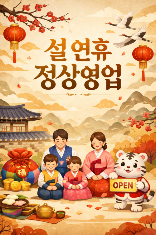 이번 설연휴인 2월 14일부터 18일까지 모두 정상영업합니다. 많은 이용바랍니다.